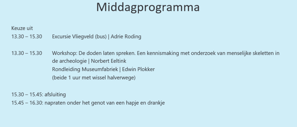 De Archeologiedag Overijssel vindt plaats op zaterdag 23 maart 2024 in de Museumfabriek in Enschede. Vanaf 9.45 uur ben je welkom voor een dag vol lezingen, wandelingen en interessante workshops.