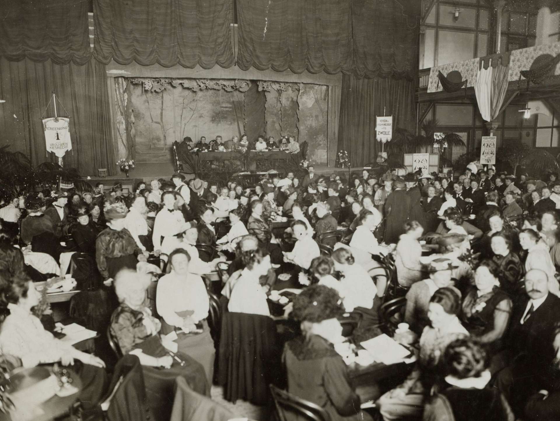 *Titelfoto: Landelijke vergadering van de VvVK in de Zwolse Buitensociëteit, 1916. Op het podium zit het hoofdbestuur met als derde van links Aletta Jacobs. (IISG, Amsterdam)