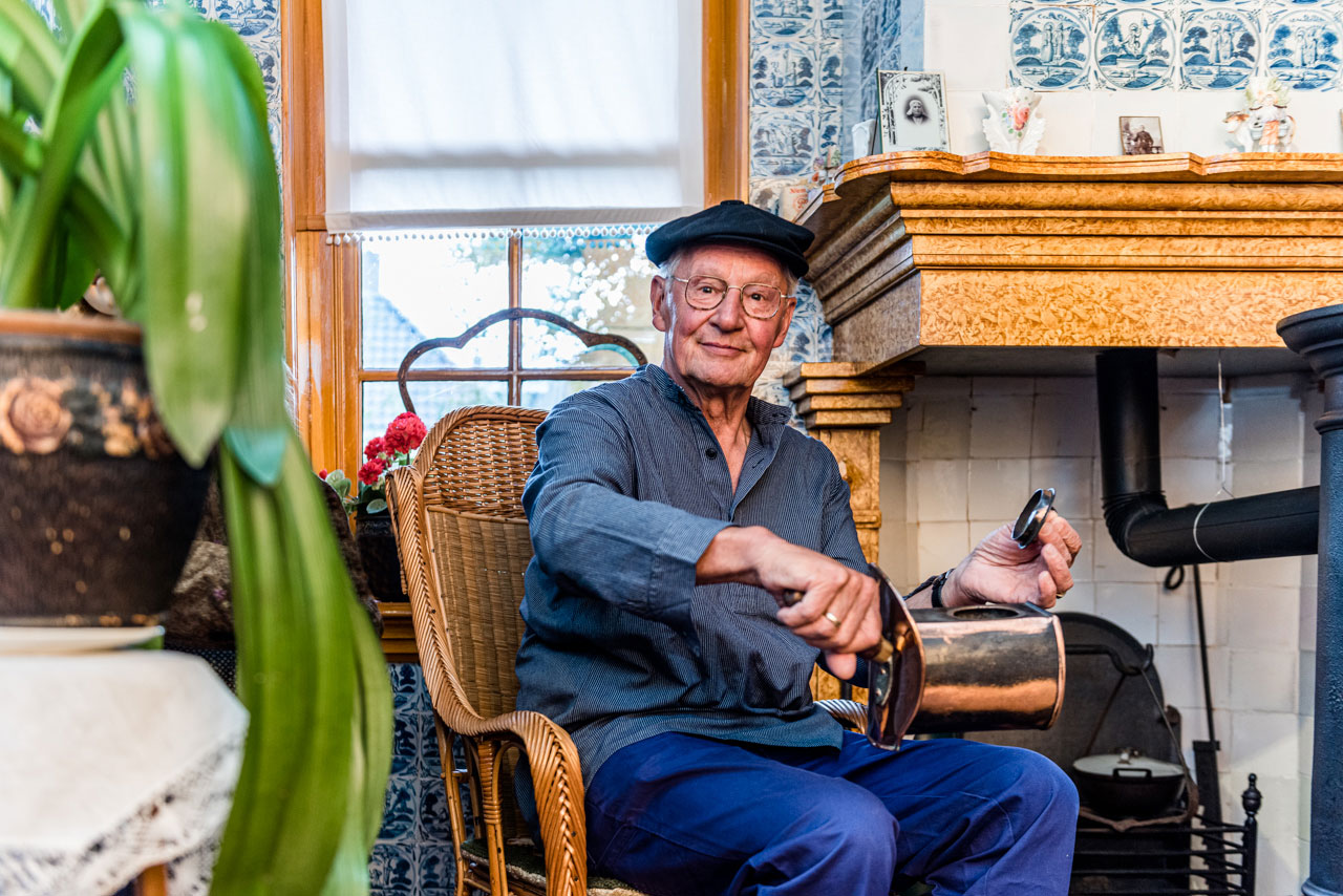 Henk is een mooi voorbeeld van een echte allround erfgoedvrijwilliger. Het rondleiden van een groep schoolkinderen? ’s Avonds het alarm aanzetten van het gebouw? Het verzorgen van een lezing over de geschiedenis van Giethoorn in bejaardentehuizen? Hij draait er zijn hand niet voor om. Zit er een favoriet tussen al deze werkzaamheden? “Het liefst leid ik de schoolkinderen rond in het museum. De kinderen zijn onbevangen en stellen vaak de leukste vragen. Hoe kreeg je vroeger een koe nou zo ver dat hij op de punter stapte? Is het echt zo dat de boeren vroeger als ontbijt pannenkoek aten? Ook laat ik ze graag het kleine vissershuisje hier op het terrein zien waar vroeger een gezin met maar liefst 11 kinderen woonde. Dat zijn ze tegenwoordig niet meer gewend en hun reacties daarop zijn geweldig.”