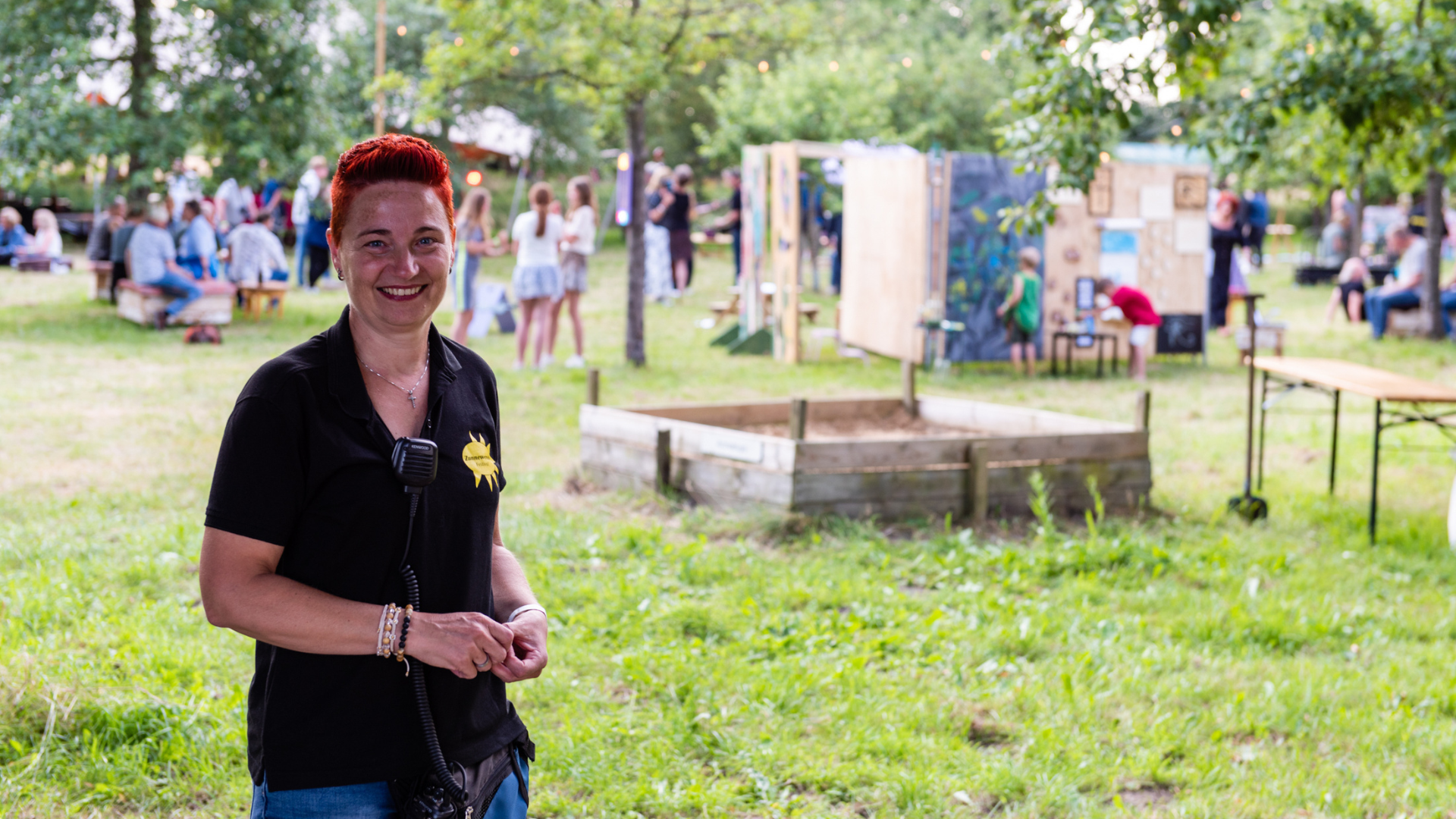 We ontmoeten Heidi op Landgoed Schuilenburg in Hellendoorn. Het Zunnewende festival, dat hier over een paar weken plaatsvindt, komt snel dichterbij. Aan de posters die op het terrein hangen en de opbouw van de podia merken we dat de voorbereidingen in volle gang zijn. Heidi vertelt enthousiast: “Ik woon met mijn man en zoon dicht bij het landgoed, het is in mijn achtertuin. Er zit veel energie van mij in het festival. Het is namelijk magisch om iets op te bouwen dat zo anders is dan hoe het er normaal uitziet.”