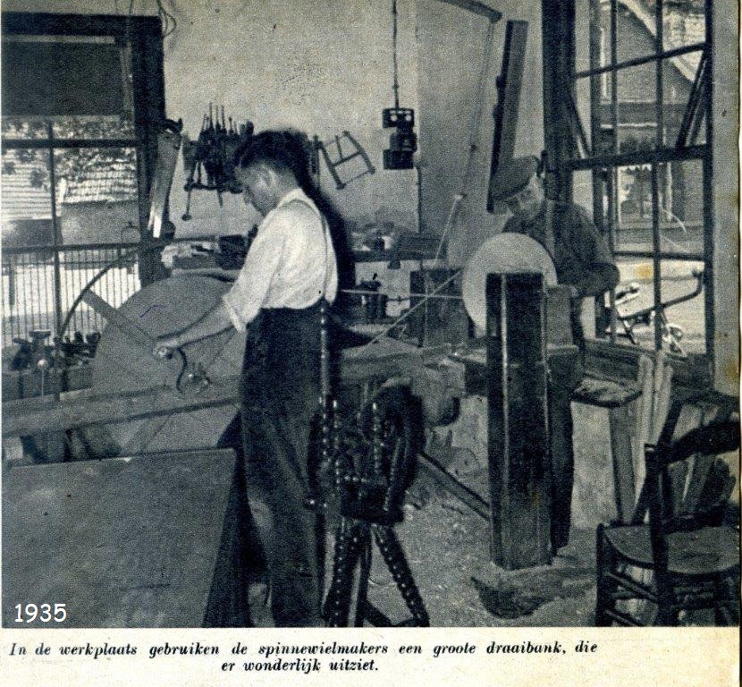 Beunen – Johan achter de draaibank (rechts); links zijn zoon Hendrik.