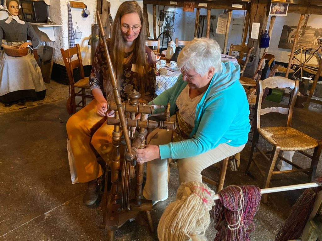 Joan vertelt enthousiast over het doel van de stichting: “Wij willen het verleden voelbaar maken. Dat doen we door oude ambachten te laten zien, zoals spinnen, weven, en houtdraaien. Maar ook door de tentoonstelling van objecten in het museum.” Anki vult aan: “Daaraan koppelen we verschillende activiteiten en workshops. We geven mensen de kans om zelf iets te maken, bijvoorbeeld een merklap of houten speelgoed. Dat maakt het tastbaar.”
