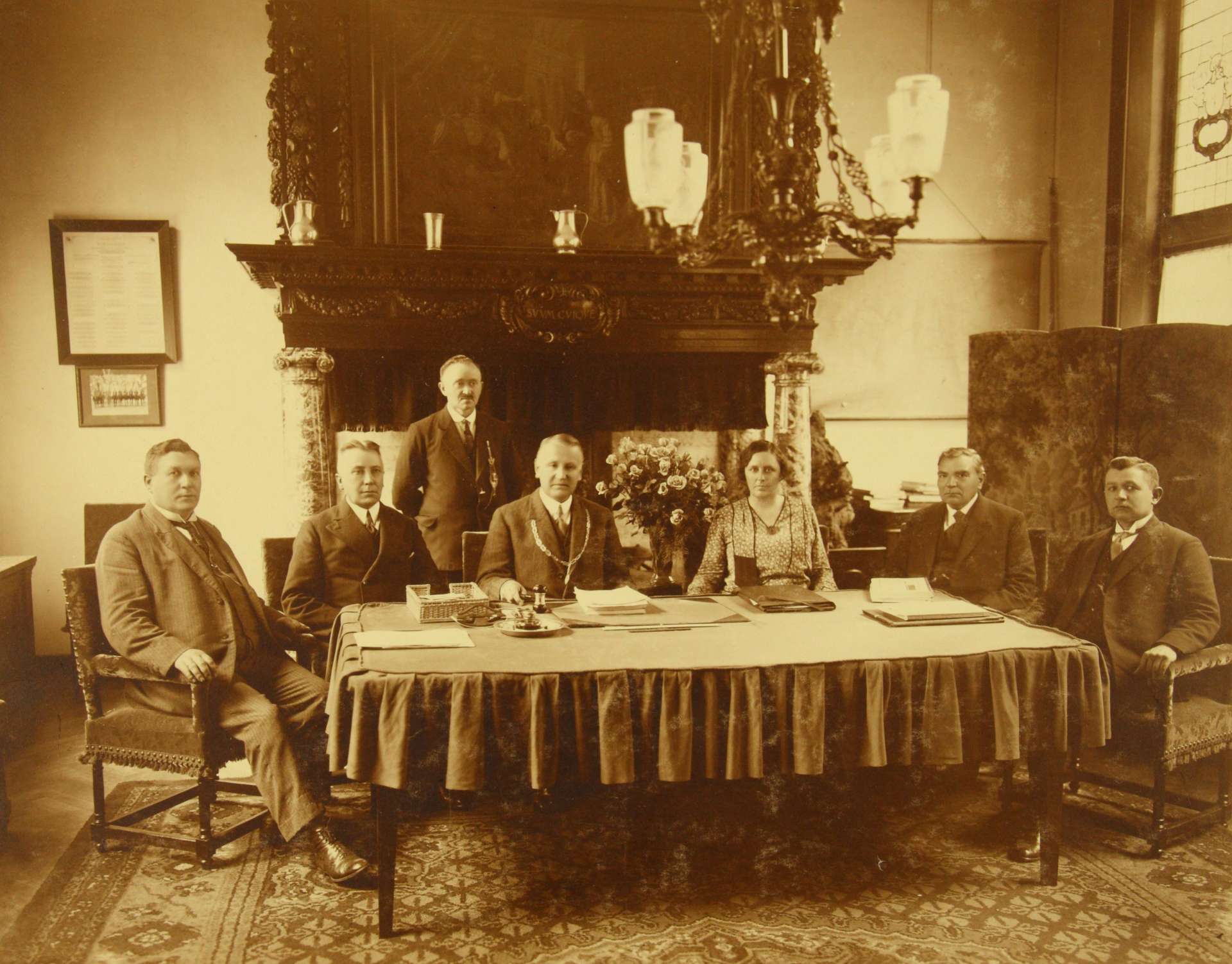 *Titelfoto: Het college van BenW van Deventer in 1929. In het midden burgemeester Wttewaall en rechts naast hem Trijntje Saunders-Blaauboer. (Stadsarchief Deventer)